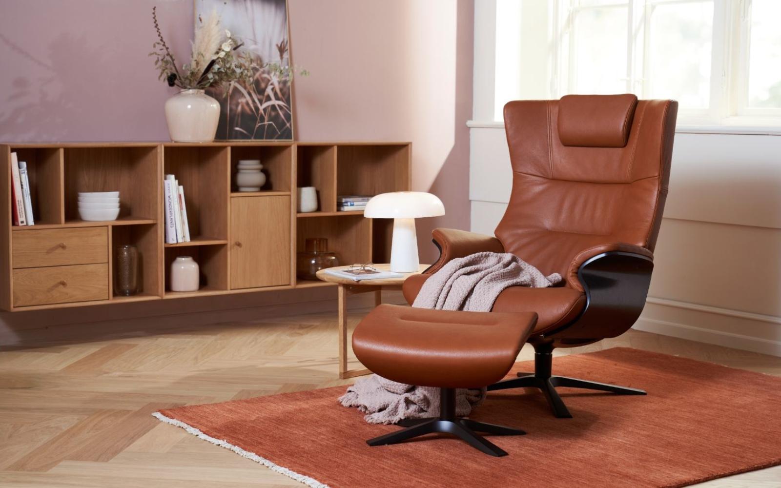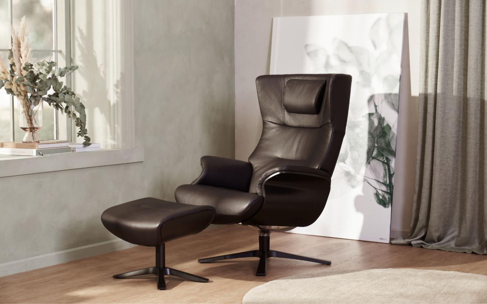 AfterWork er en lækker lænestol, der kan kombineres med en fodskammel, hvis du vil opleve ekstra behagelig komfort, når du slapper af i stuen.