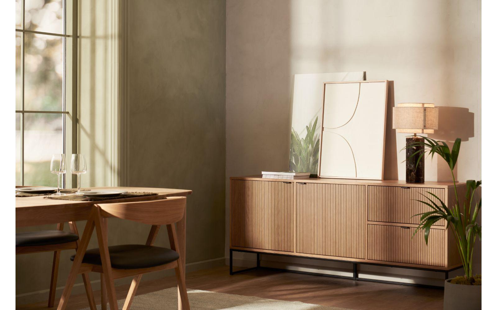 Hvorimod skabe kan virke tunge og klodsede i indretningen , er en skænk det perfekte møbel med luft omkring, så den ikke overtager rummet. Du kan gemme rodet væk bag skabe og låger, samtidig med at du kan vise din yndlingsvase frem, som kan stå som pynt ovenpå skænken.